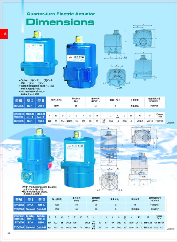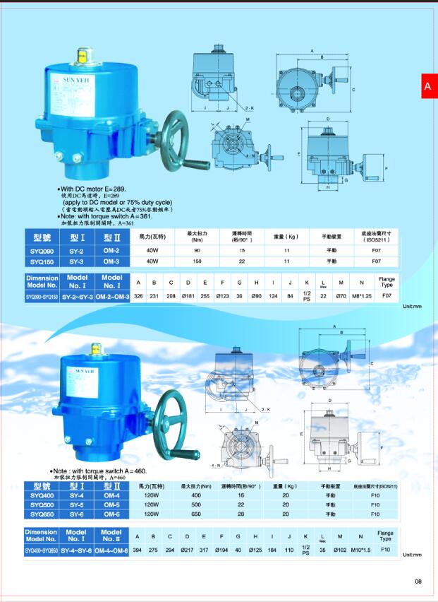 台湾SUN YEH山野电动执行器 OM-7\OM-8\OM-9\OM-10\OM-11\OM-12